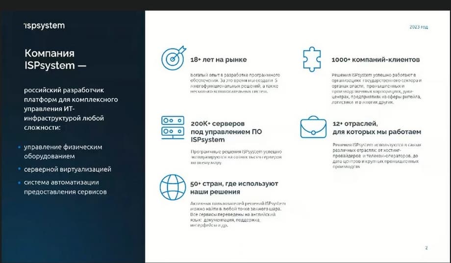 Мероприятие сегодня ведет Игорь Михайлов, менеджер продукта, ISPsystem. Компания ISPsystem является частью группы компаний АСТРА – российского разработчика платформ для комплексного управления ИТ-инфраструктурой.