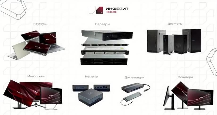 Олег Епишин начал свое выступление с рассказа об истории компании «Инферит», которая началась 5 лет назад. Тогда было создано направление Softline Computers. Начиналось оно с производства персональных устройств, но быстро стало развиваться, увеличивать производственные мощности, расширять линейку продукции. Чуть позже добавилось производство серверов. И к концу 2021, началу 2022 года стало очевидным, что, с одной стороны наши производственные мощности сильно возросли, появилась возможность производить большое количество разнообразного оборудования, качество нашей продукции тоже постоянно росло, выпускаемое оборудование стало пользоваться определенным спросом. С другой стороны, в 2022 году рынок сильно изменился, многие западные вендоры ушли, освободились те ниши, в которые раньше было зайти почти нереально. Поэтому руководство группы компании Softline принимает решение, что направление Softline Computers надо выделять в самостоятельный бизнес. Раньше оно занималось в основном внутренними нуждами тех компаний, которые продавали оборудование внутри Softline. Но руководство решило, что пора выходить на российский рынок. Для этого была создана отдельная компания, юридическое лицо, которое в 2022 было переименовано в «Инферит». Но в 2023 году под этот бренд стали подтягиваться и другие продуктовые направления, которые тоже постепенно переименовывались. Но всех их отличает одна общая особенность. И техника, и производство, и разработка программных продуктов и решений, и облачные технологии – все это разработка и интеллектуальная собственность «Инферит». Сейчас мы представляем несколько направлений. Есть производство программных аппаратных комплексов, есть инфраструктурные решения, есть решения, связанные с облаками. Целью презентации является рассказ о том, какие продукты мы представляем.