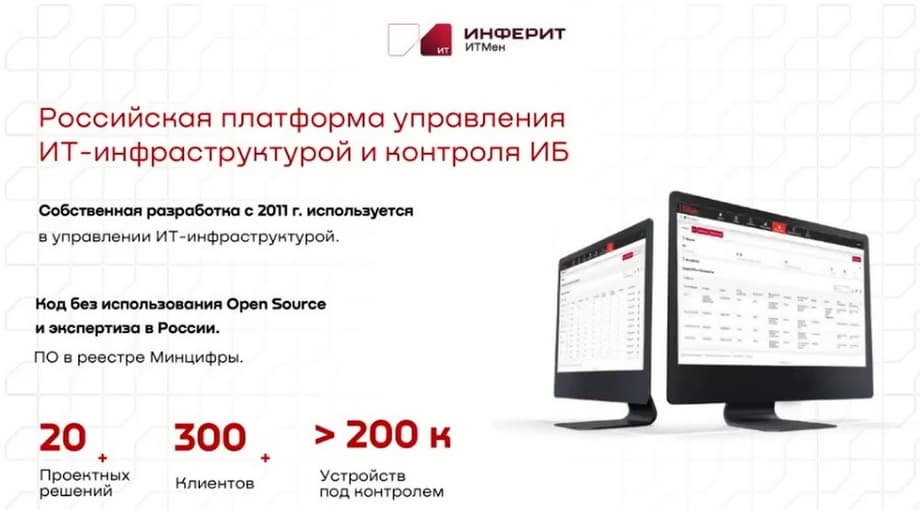 «Инферит ИТМен» автоматизирует работу от начала сбора данных вплоть до поставки данных коллегам, которые отвечают за ИТ-процессы. Мы можем помочь развиваться компаниям начиная от 500 сотрудников, следующий этап – 2000 сотрудников, затем 10 000 сотрудников и наконец самые крупные - компании с сотнями тысяч устройств, которые подключены к сети.