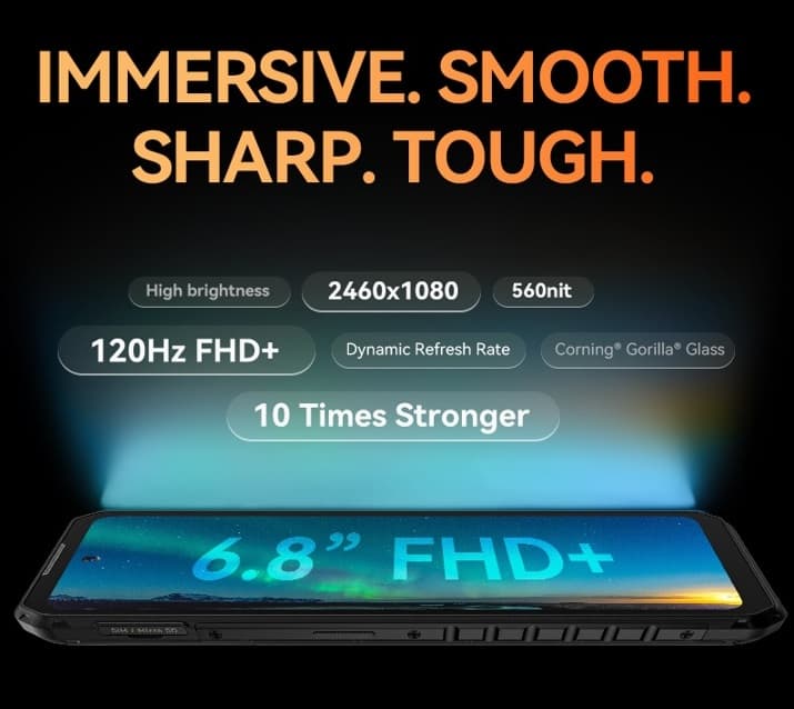 •Дисплей: 6,8″; разрешение 2460x1080 пикселей; частота обновления 120 Гц, дырокол, стекло Gorilla Glass