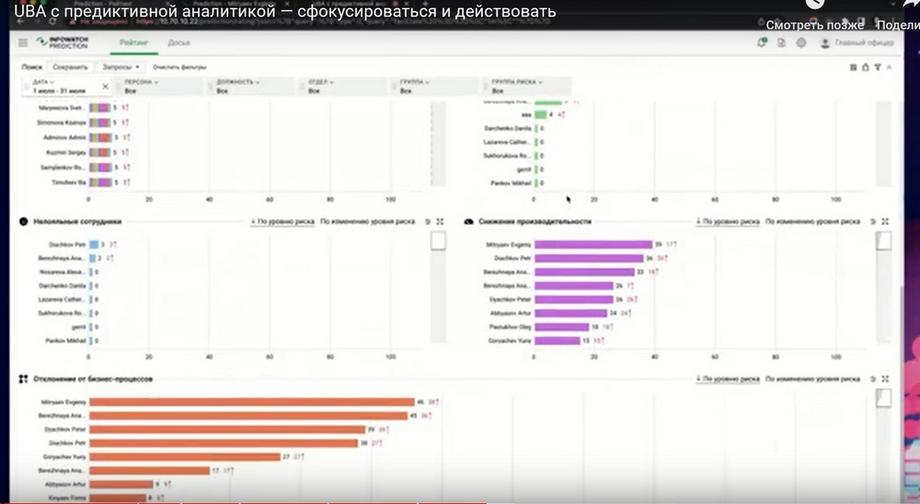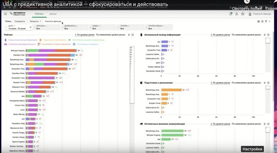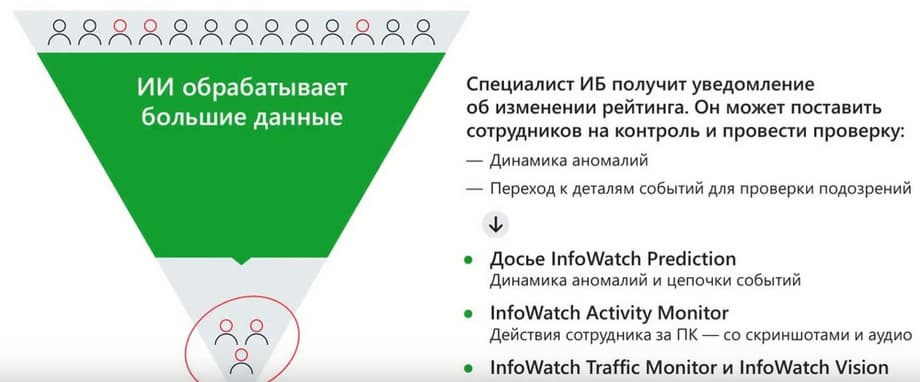 И третий аспект заключается в том, что мы ставим своей целью то, чтобы InfoWatch Prediction закрывала основную задачу, т.е. своевременно выявлять потенциальных нарушителей, делать это в необходимым уровнем качества и точности. И InfoWatch Prediction предоставляет такую возможность, благодаря хорошо продуманному интерфейсу и тем инструментам, которые позволяют пользователю взаимодействовать с системой.