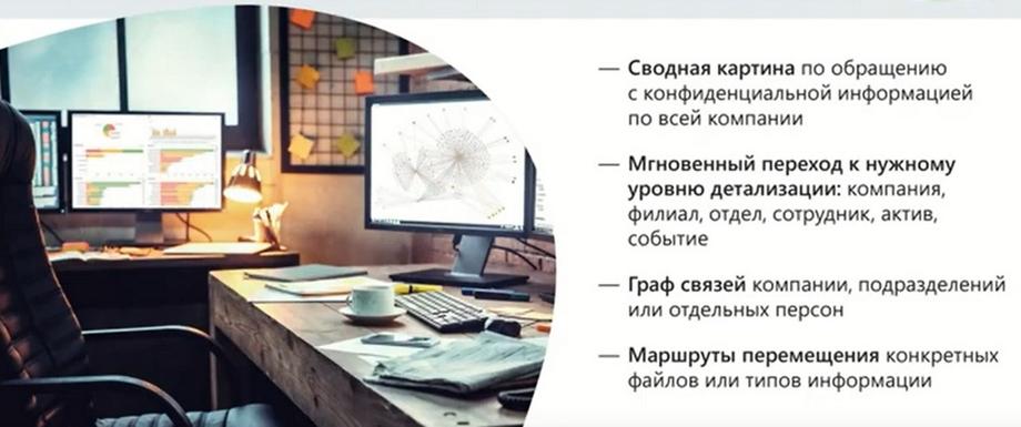 И можно с высоким уровнем конкретизации понять, что происходило в течение рабочего дня сотрудника. Если нужно расширить контекст и посмотреть, например, что происходило с какой-то конфиденциальной информацией или с кем взаимодействовал сотрудник, то в распоряжении офицера безопасности есть режим, который предоставляет все инструменты.