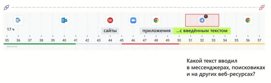 Специальным маркером помечаются события с вводимым текстом. Т.е. помимо использования просто активности, когда мы используем приложения web-сайтов, у нас будут события, где есть прикрепленный текст. Лейтмотивом всего этого инструмента является то, что вы можете сфокусироваться только на том, что важно для вашего расследования инцидента и для детализации информации.