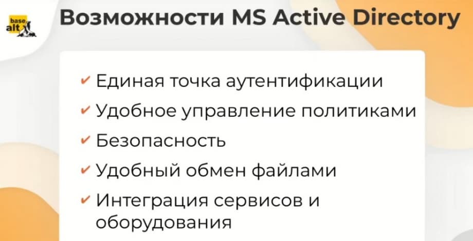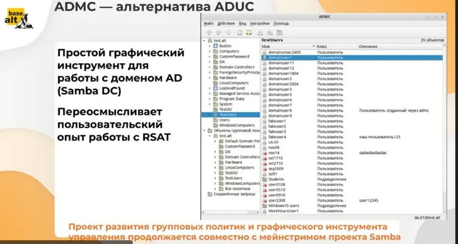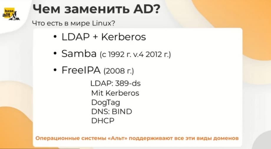 - Samba DC – выбор разработчиков «Базальт СПО»;
