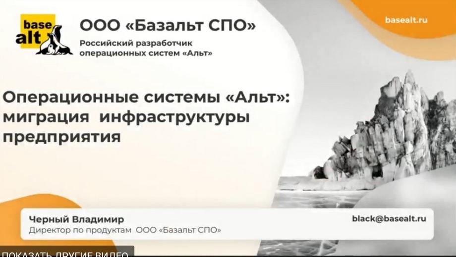Сегодняшнее мероприятие ведет Владимир Чёрный, директор по продуктам, «Базальт СПО». Начал он свое выступление с рассказа как предприятию, построенному на инфраструктуре на основе windows, перейти к импортозамещающим решениям.