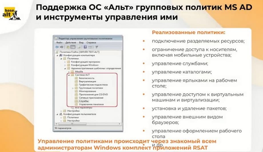 Можно управлять политиками через инструмент RSAT. Но если мы хотим избавиться от Microsoft в перспективе совсем, то где же нам взять инструменты управления?