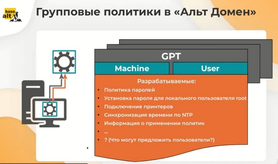 Сейчас мы работаем над политиками паролей, над установкой паролей для локальных пользователей, над подключением принтеров, синхронизацией времени по NTP и т. д. Мы открыты для всех, если есть какие-то пожелания по политикам, то прошу, пишите нам.