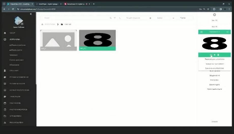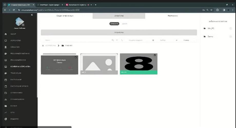 После того, как мы добавили и настроили устройство, следующим этапом является добавление контента. Сам контент также можно структурировать наподобие того, как мы ранее структурировали устройства. Здесь уже имеется несколько предварительно созданных папок, добавлен и структурирован контент.