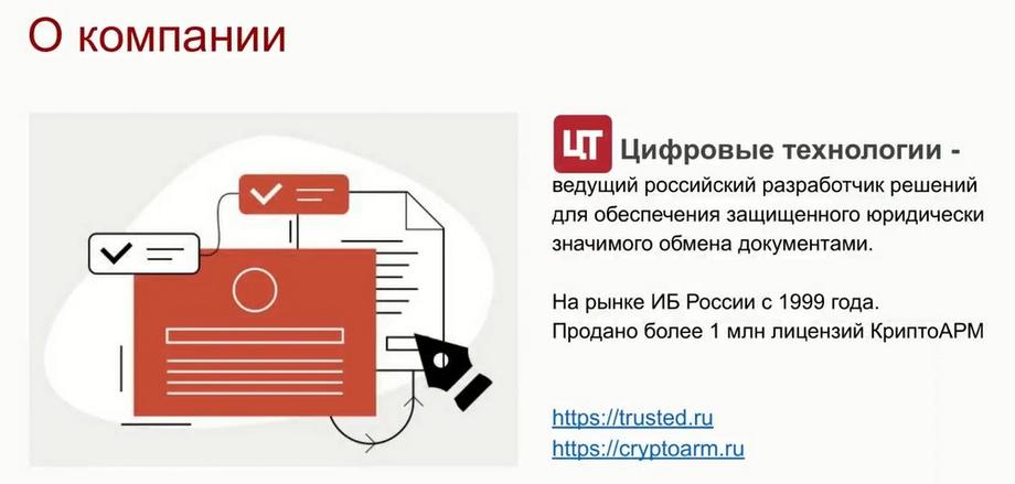 Мы разработчики решений в сфере защищенного электронного документооборота на рынке работаем с 1999 года. Основной наш — КриптоАРМ.