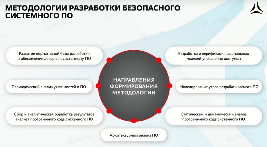 Но сами по себе механизмы защиты, интеграция с другими средствами защиты тоже не сможет обеспечить максимальную защищенность. Поэтому у нас внедрена в компании при разработке продуктов методология разработки безопасности системного ПО. Она позволяет нам проводить на всех этапах разработки контроль как исходного кода, так и функций операционной системы. Также производится тестирование, в том числе и контроль доставки, контроль наличия поиска уязвимостей и последующего обновления операционной системы. Внедрение механизмов защиты, поддержка внешних средств защиты, система безопасного разработки ПО – это все в комплексе обеспечивает максимальный уровень защищенности самой операционной системы. Это ГОСТ 56939, он открытый, но сейчас идет его доработка. Но тот ГОСТ, который выложен, он действующий и по нему можно работать.