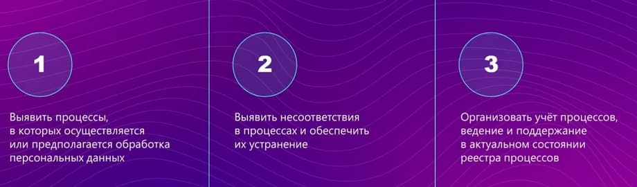 Следующим шагом, который необходимо выполнить, это провести аудит процессов обработки персональных данных. Нужно понять, какие персональные данные обрабатываются в компании, в каких бизнес-процессах эти персональные данные участвуют. Мы должны обязательно расписать эти процессы и понять, возможные несоответствия к тем требованиям закона, которые сейчас существуют. Если же есть какие-то несоответствия, безусловно, над ними необходимо будет работать. Не забывайте о том, что все процессы, в которых осуществляется обработка персональных данных, должны быть учтены и соответственно должен производиться их учет, ведение, поддержание в актуальном состоянии, то есть это говорит о том, что не только мы должны на втором шаге сделать аудит процесса и забыть про него, а процессы должны быть жизненными, то есть мы должны постоянно их аудировать на возможные изменения, которые произошли.