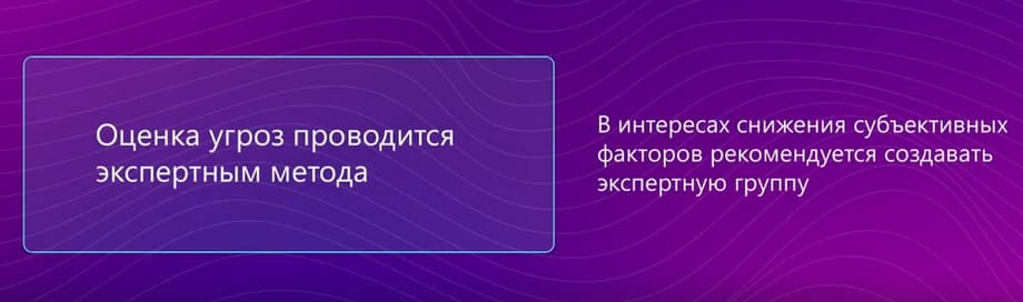 Оценка угроз производится экспертным методом и зачастую собирается комиссия экспертов и производится оценка угроз. Не стоит забывать о том, что у нас существует банк данных угроз, ФСТЭК России. То есть все инструменты, которые сейчас применяются, они должны быть применены для того, чтобы максимально полно понять, какие угрозы возможны и какие уязвимости в системе возможны. Это позволит совершенно точно создать более надежную систему защиты информации, чем если мы будем анализировать меньшее количества источников.