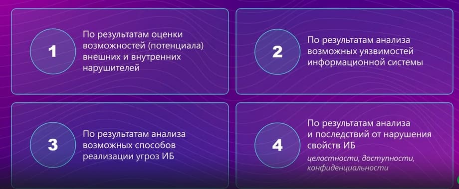 Если возвращаться к тому документу, о котором я ранее говорила, утвержденному Федеральной службой по техническому и экспортному контролю, то в нем выделены основные способы определения ИБ-угроз.