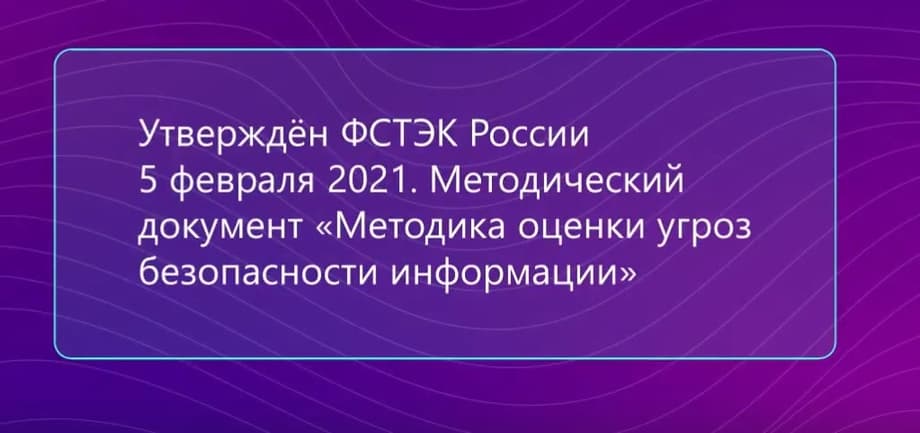 5 февраля 2021 года в ФТЭК России утверждена «Методика оценки угроз безопасности информации».