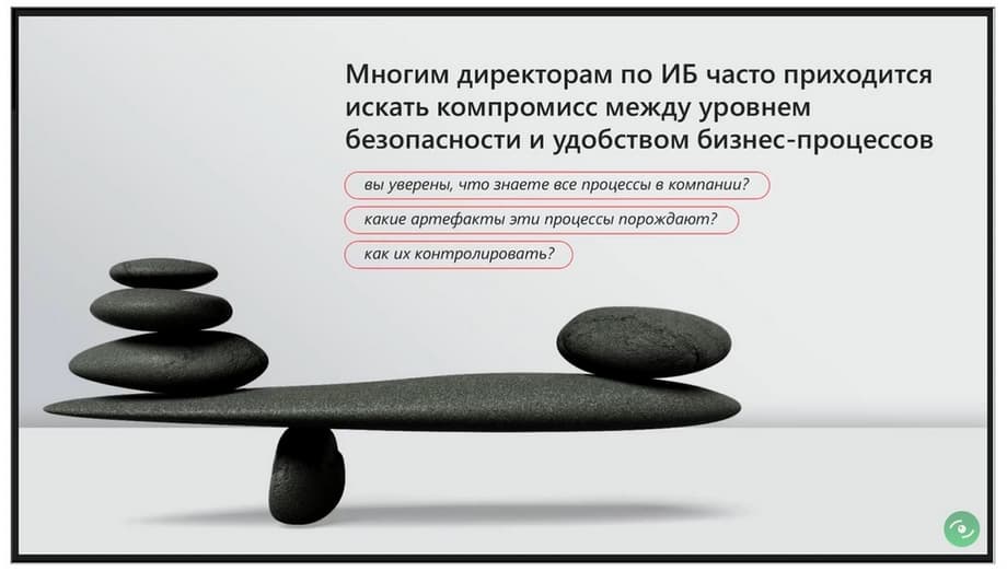 У каждого безопасника своя модель поведения. Но мы нередко встречали руководителей, которые не просто хотели мониторить и контролировать, но и влиять на бизнес-процессы для того, чтобы им было удобнее контролировать. Это ни в коем случае нельзя делать. Руководители ИБ должны понимать, что их служба для компании должна быть эффективной, но незаметной. Соответствующие требования предъявляются к продуктам. И мы всегда ориентировались на то, чтобы наши продукты максимально предоставляли полезную и важную информацию для безопасника, но в то же время не ухудшали текущие бизнес-процессы, или, по крайней мере, не увеличивали время их выполнения.