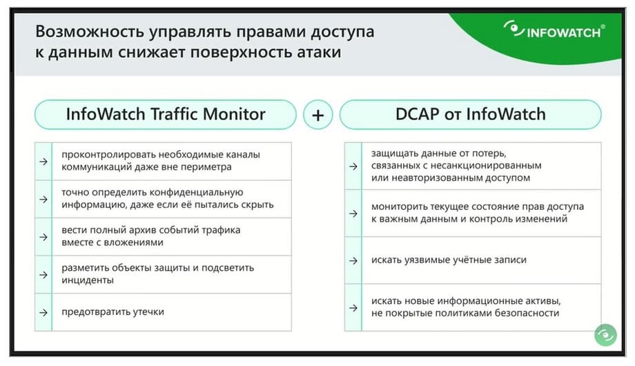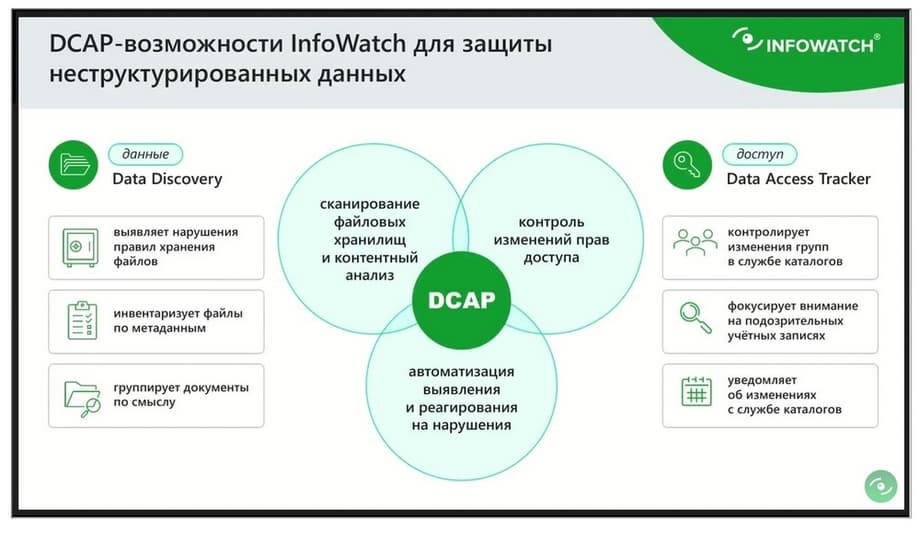 И буквально пару слов про DCAP-функциональноcть. Таким образом, у нас в компании InfoWatch DCAP функциональность - это не какой-то монолит.