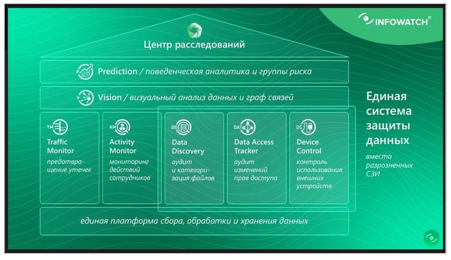 Кто-то предлагает DCAP как монолитный продукт, предлагает приобретать и дальше с ним работать. Но мы сейчас развиваем такое понятие, как инфраструктурные решения, которые объединены единым центром расследования. Кто-то нам говорит, что это моновендорность, но на самом деле нет, потому что у нас есть определенная специфика, связанная с анализом контента. И мы говорим только про это. И в DCAP это основная функциональность. И три решения, на которых базируется DCAP- функциональность - это Data Discovery для аудита данных, это Data Access Tracker - для анализа изменений прав доступа, Device Control -для контроля рабочих станций. Они представляют DCAP - функциональность, но, тем не менее, они могут работать и совместно с другими нашими решениями и даже самостоятельно.