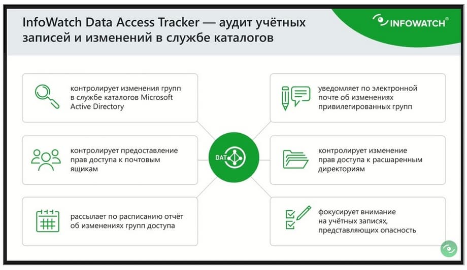 И как раз контролем изменения прав доступа у нас занимается отдельный продукт, Data Access Tracker (DAT). Сканирование файловых хранилищ и контента осуществляет Data Discovery, которое идет и как часть Traffic Monitor, и как отдельное решение для проведения аудита. Я позже покажу новую версию, которая выйдет в ближайшее время. Мы сейчас ее стабилизируем. И я думаю, в декабре вам будет доступен этот продукт в коммерческом релизе.