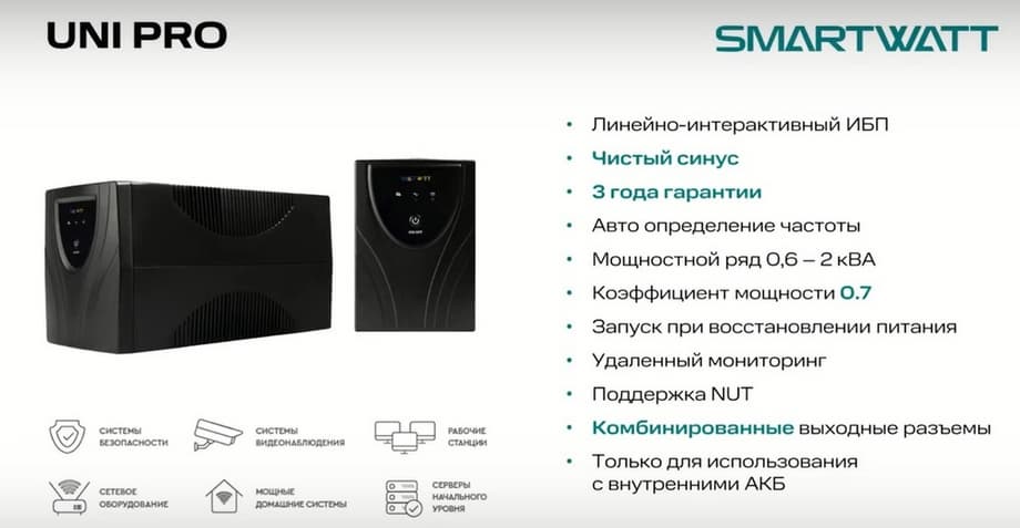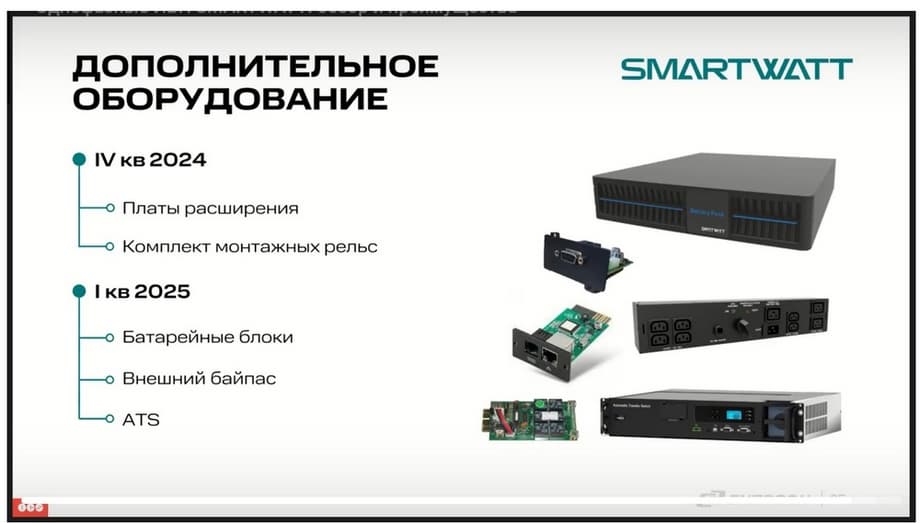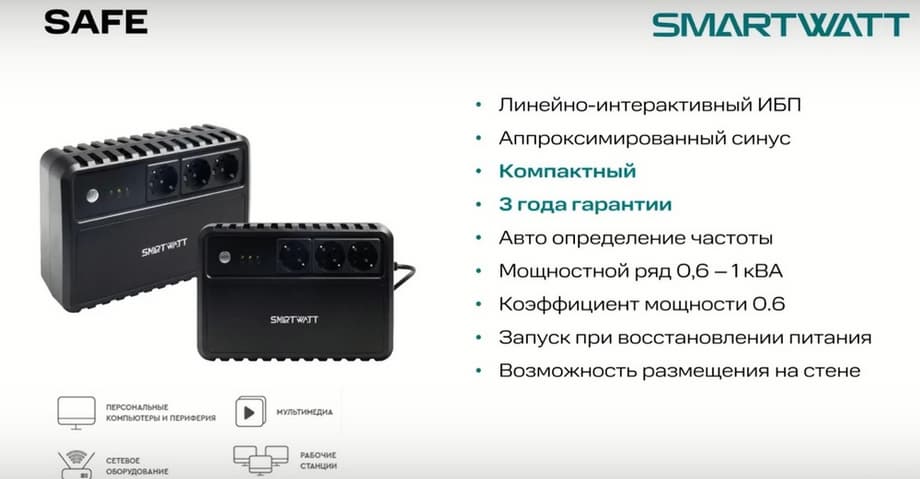 Это новое оборудование на российском рынке. Мы заявили о нем в апреле 2024 года. Линейку мы планируем в дальнейшем расширять и развивать. Презентация будет посвящена тому, что такое ИБП SMARTWATT и что они обеспечивают.