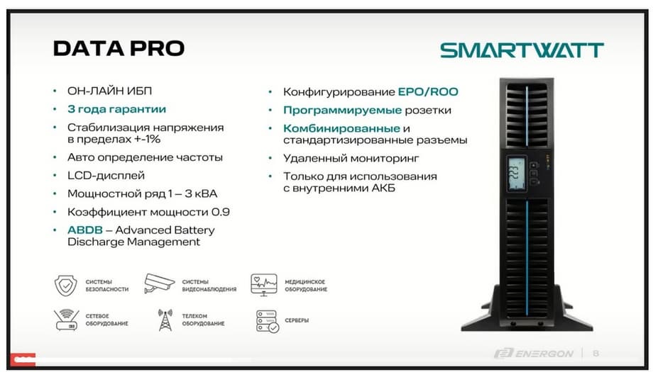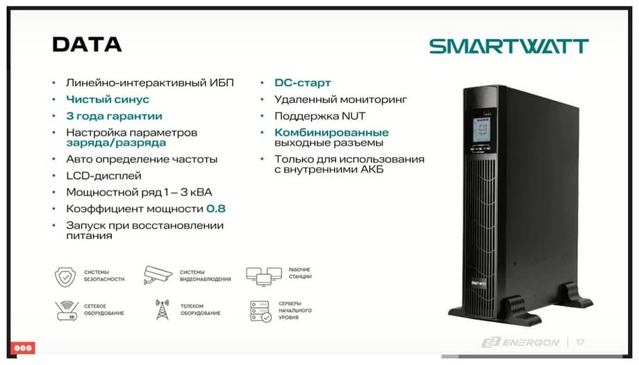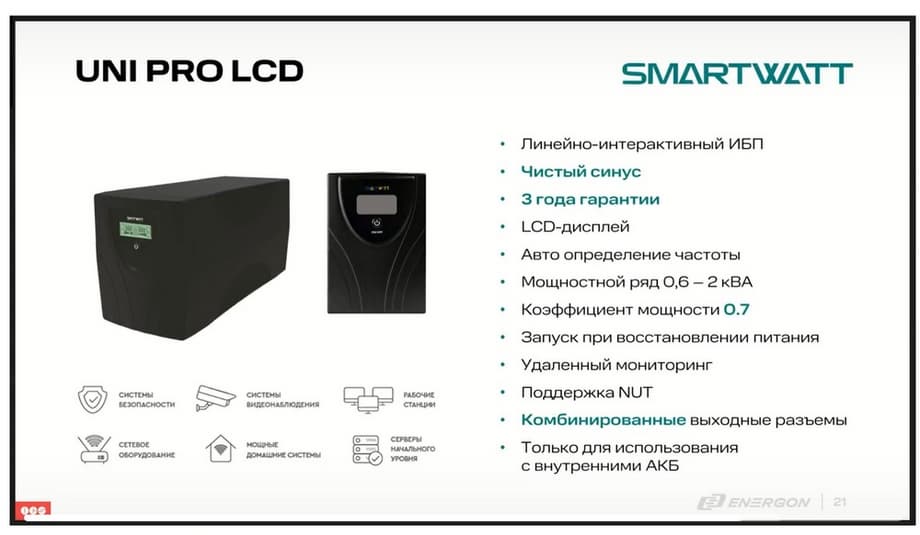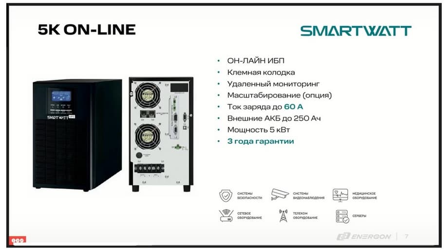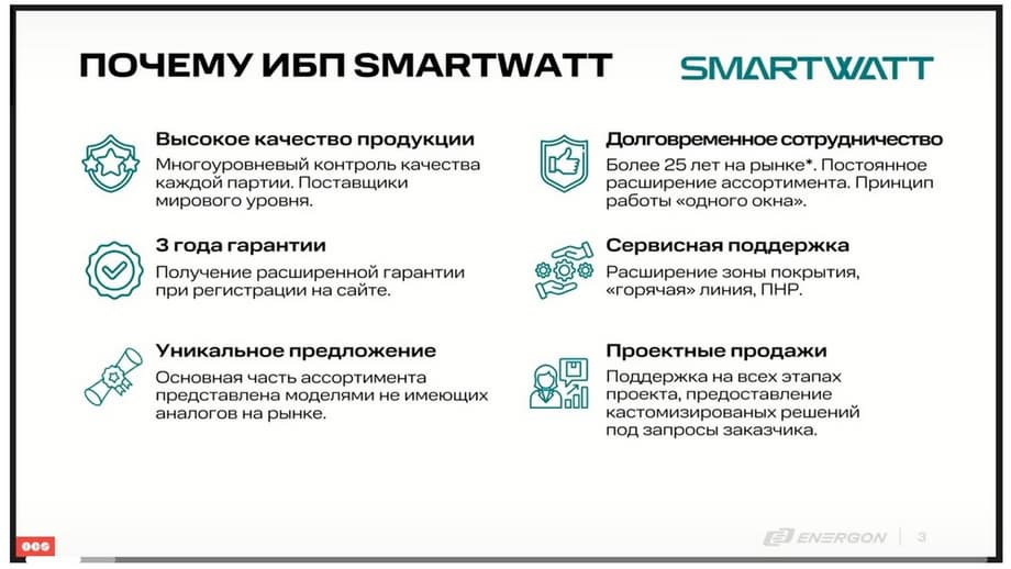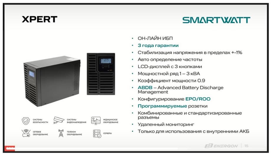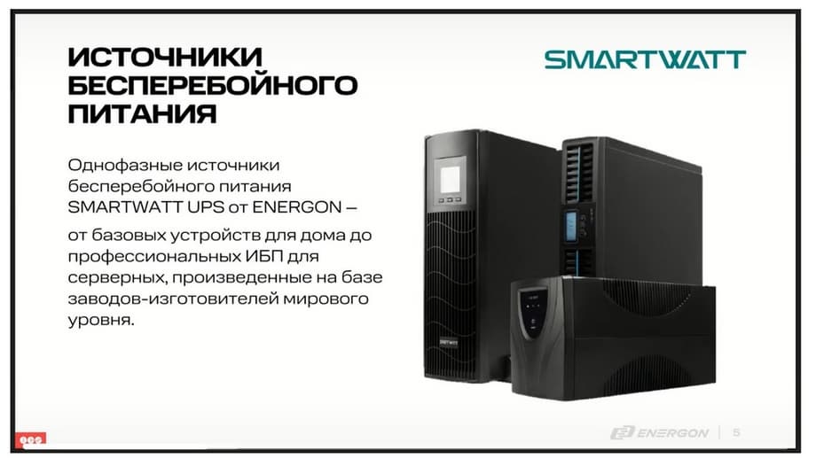Итак, что касается непосредственно бренда SMARTWATT. Компания ENERGON существует более 25 лет на рынке, и ИБП мы планируем развивать в течение длительного времени.