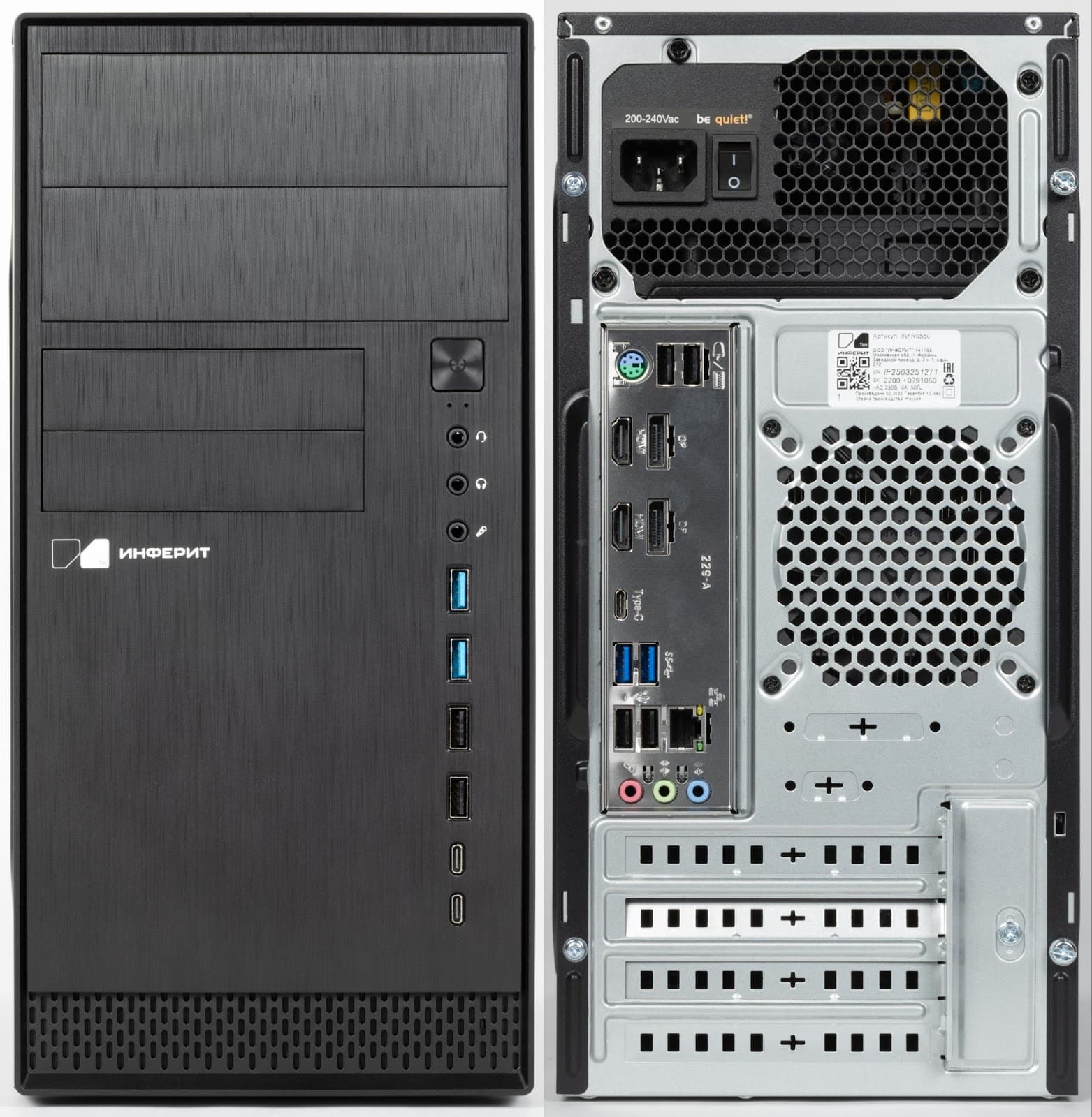 *Для подготовки обзора использовался ПК, внесённый в реестр Минпромторга РФ — устройство, созданное с соблюдением требований к локализации производства, включая выпуск ключевых компонентов на территории России. В частности, речь идёт о материнской плате, памяти, модулях ввода-вывода и других элементах, критически важных для соответствия нормативам. У компании «Инферит» есть возможность поставлять такие решения, и нам было интересно взглянуть именно на них. Основные потребители «реестровых» ПК — государственные учреждения и организации, обязанные использовать сертифицированную технику российского производства.
