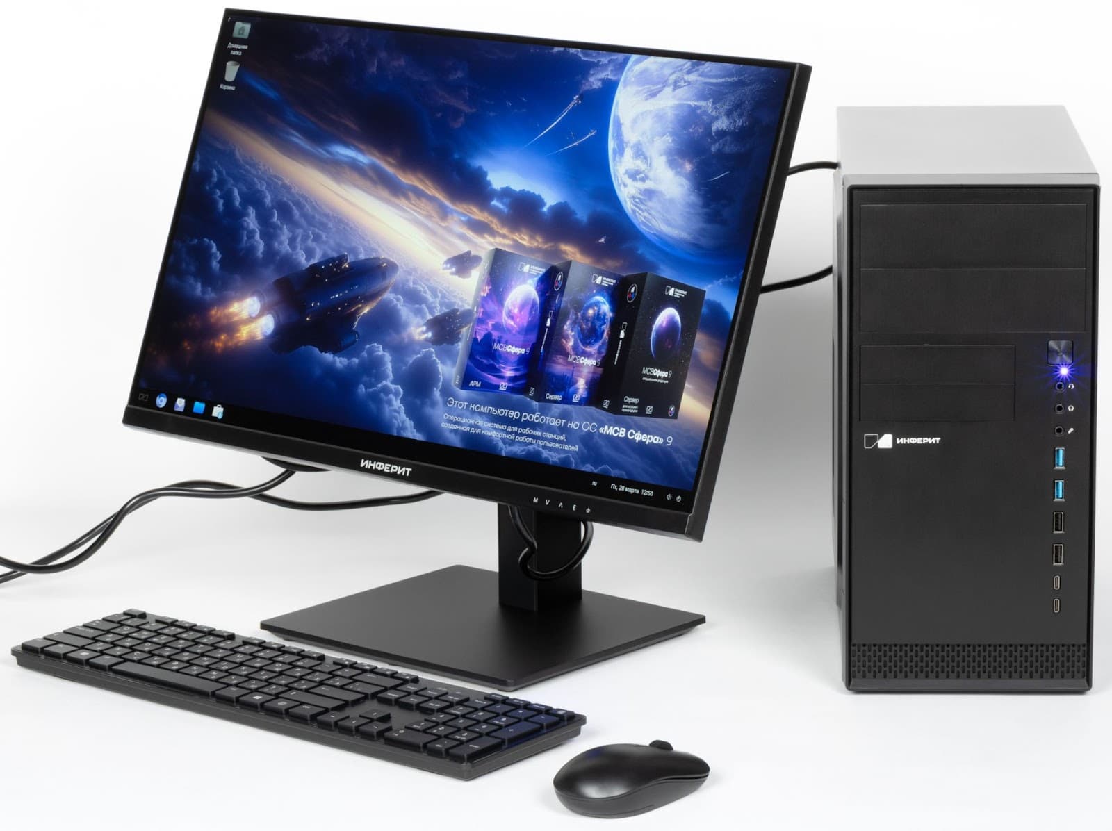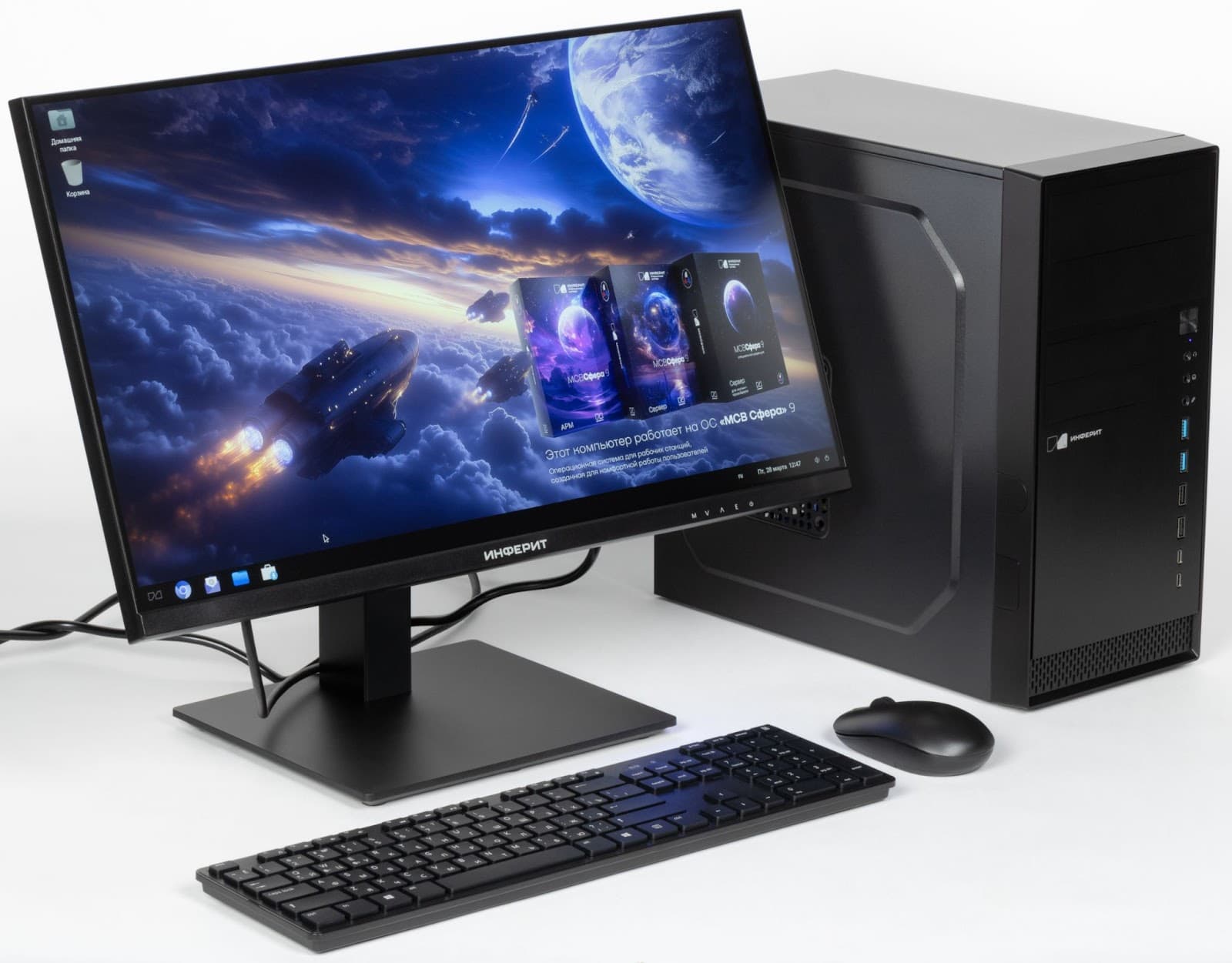 На компьютерах «Инферит» уже установлена российская операционная система «МСВСфера АРМ» 9. Она разработана на ядре Linux и функционально заменяет пользовательские зарубежные ОС: Windows, macOS, Ubuntu и корпоративные ОС класса Enterprise Linux. Редакция «АРМ» — это версия операционной системы для рабочих станций и домашнего использования.