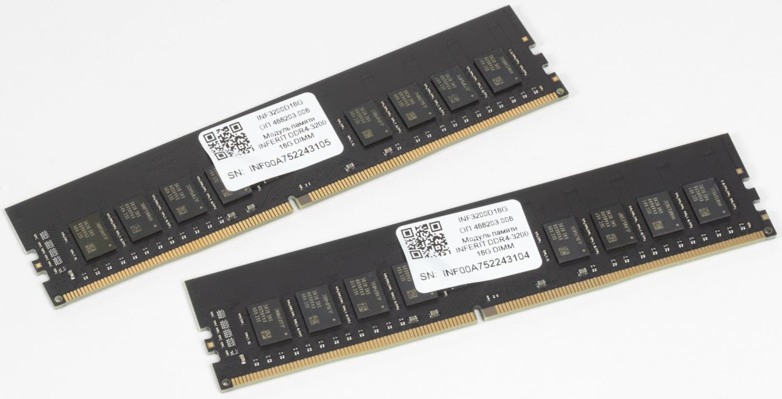 Что касается выбора DDR4 вместо более современной DDR5 — он полностью оправдан. При заметной разнице в цене прирост производительности в офисной среде будет минимален, так что DDR4 остается разумным и сбалансированным решением. Модули выполнены на черной плате без радиаторов, на них установлены микросхемы памяти Samsung — качественные чипы от одного из ведущих производителей DRAM, часто встречающиеся на модулях таких брендов, как Kingston, Crucial и Corsair.