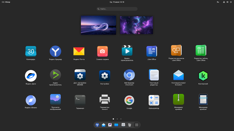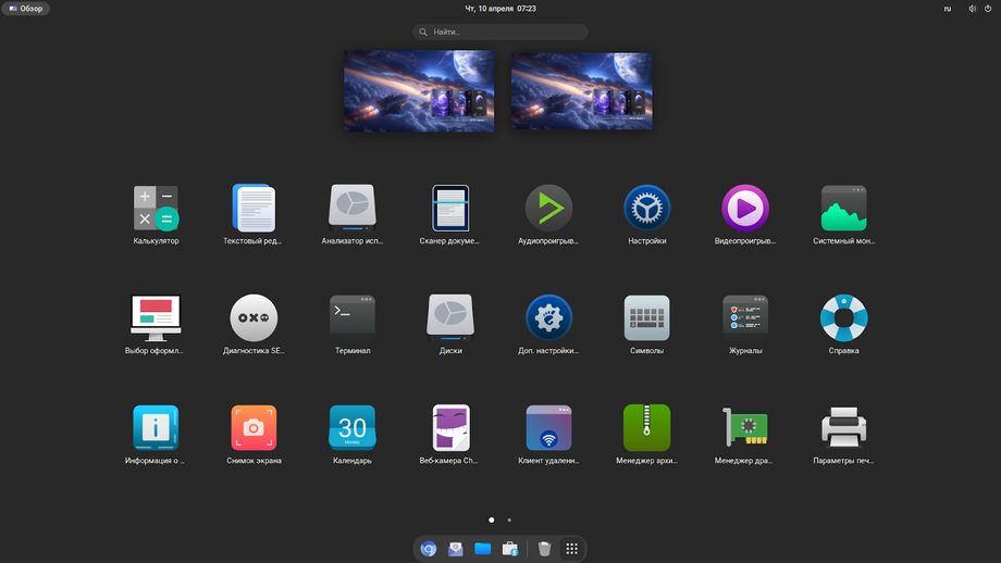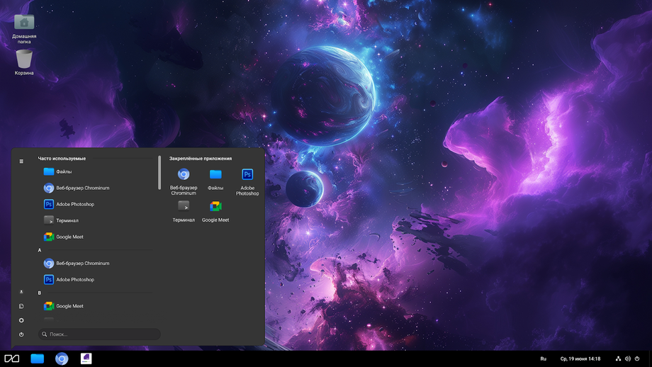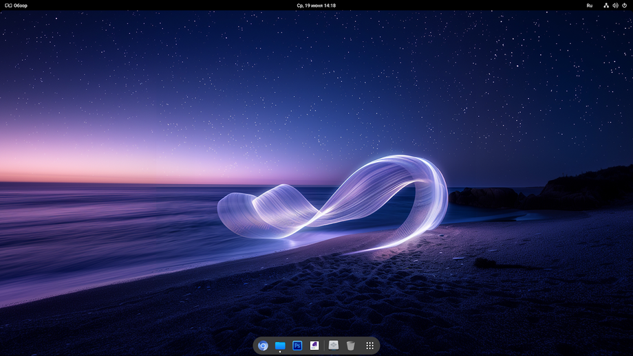 Есть здесь и собственный аналог меню «Пуск», и док с верхней панелью — каждый может выбрать то, что больше нравится.