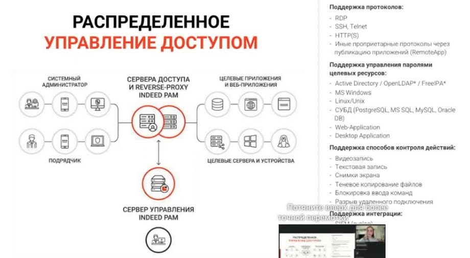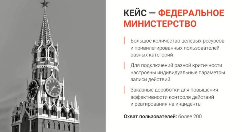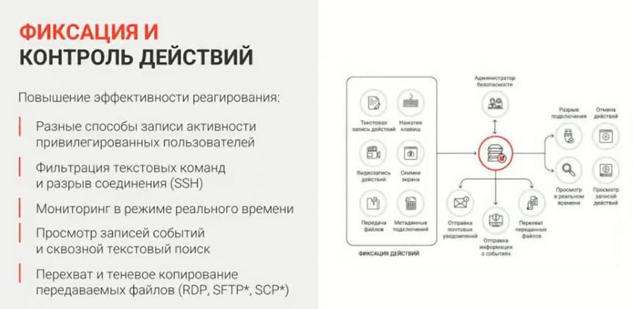 Also in our PAM, two-factor authentication is supported and the possibility of integration via syslog with our Russian IB systems.