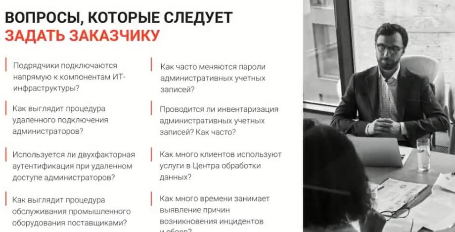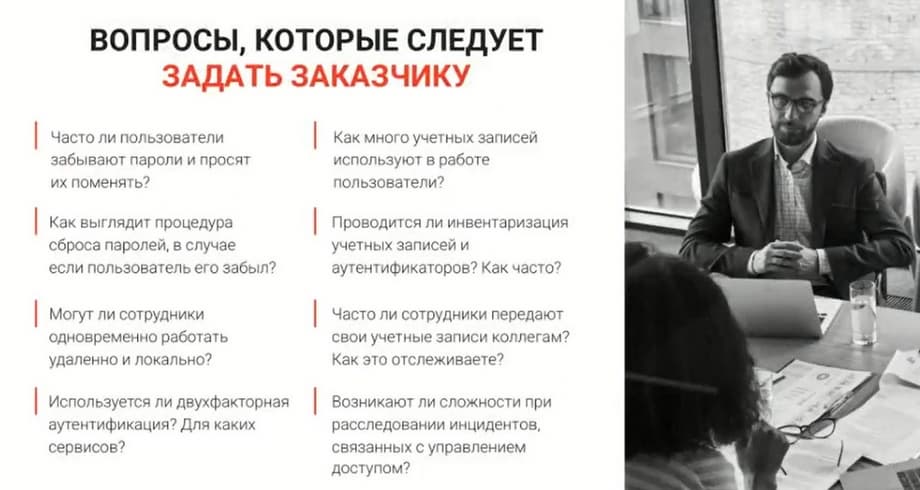 How to start a conversation with a potential customer? To help you, we have compiled a list of questions that you can use. These questions allow you, when you come to the customer, to identify their needs. Or vice versa, to plant in them the idea that something in their infrastructure is not right, and isn't it time for them to think about a product like IАМ?