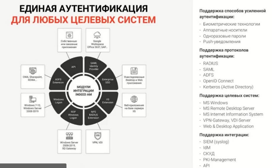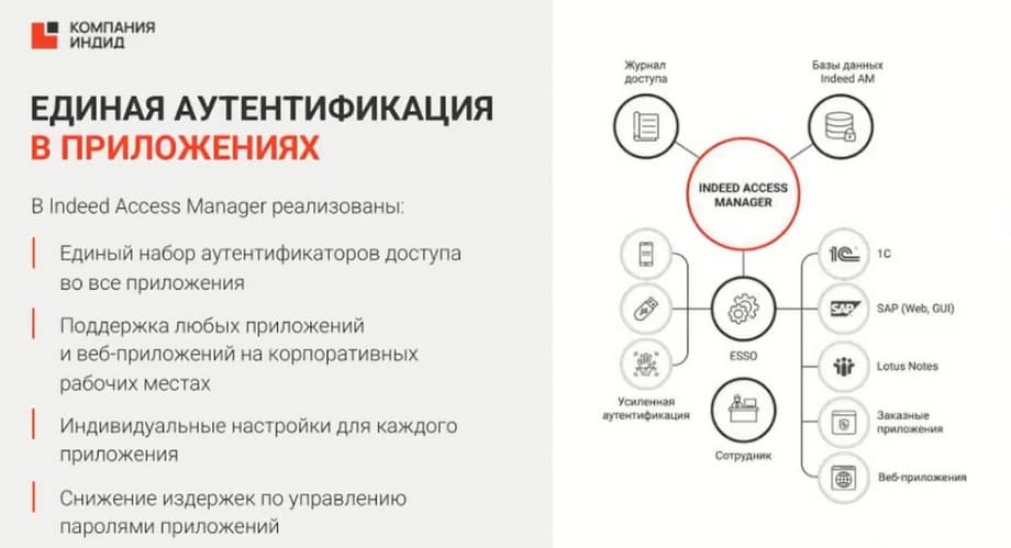 Indeed Access Manager - is a solution for multi-factor authentication with single sign-on technology to all corporate resources. The biggest problem for customers is usually passwords. Knowing the password allows attackers to obtain confidential employee data, and then confidential data of the entire company. There are 2 types of common passwords: complex and simple. Simple passwords are easy to remember, they don't need to be written down anywhere, but an attacker can easily find access to a simple password. There are more complex passwords with a diverse set of letters, numbers, and other characters, which are very difficult to remember. Therefore, employees often write down such passwords on pieces of paper, stick these pieces of paper on the monitor so they don't forget where they put them, or write them in notebooks or in notes on their phone, and some hide them under the keyboard, and even sometimes under the transparent phone case. No matter how complex the password is, in any case, an attacker will be able to obtain it, it will just take a little more time and resources to crack it.