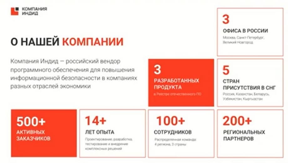 Today's event is led by Anna Shlapak, Partner Account Manager, Indeed. Indeed is a Russian vendor, a Russian developer. We have completely our own components, we write them ourselves, and use domestic software. We have been on the market for 15 years. The company has over 500 active customers, implemented projects, over 200 regional partners, more than 100 employees, most of whom are technical specialists.