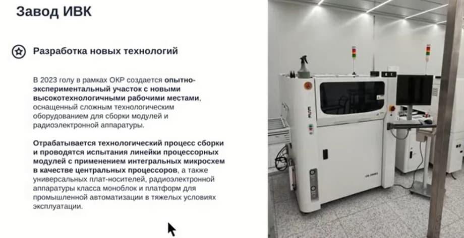 In the activities of IVK, three major areas can be distinguished. These are the development and production of domestic system software based on solutions from international open source projects and based on its own "Sisyphus" repository. The second area is the development and production of information security tools in the form of software and hardware complexes. And the design, development and production of computer equipment, including those based on domestic processors, computer equipment for general and industrial use, servers, monoblocks, computing modules, laptops. Computing equipment is manufactured at its own modern assembly production facility, equipped with a conveyor line and a thermal chamber for testing.