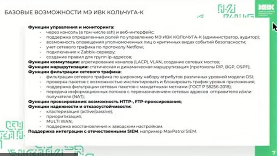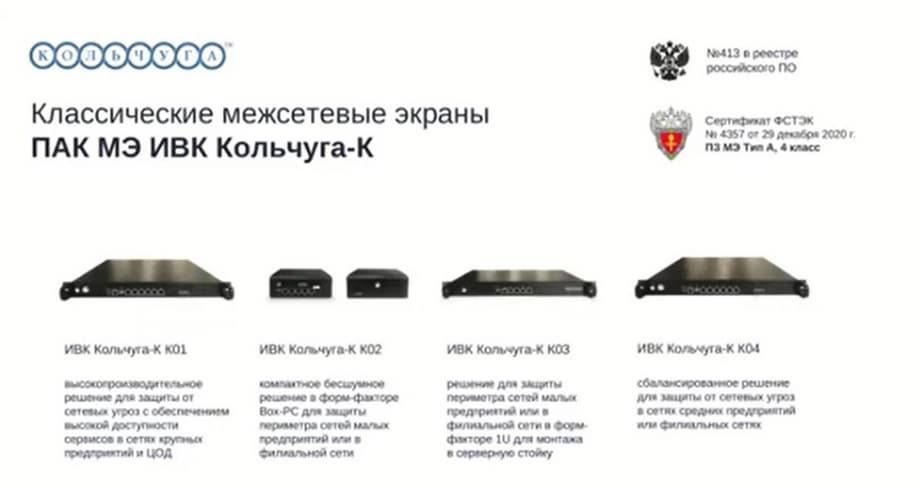 He focused in more detail on the issues of specific technical solutions of our products related to network protection. This is the IVK Kolchuga-K firewall software and hardware complex. He said that in some moments I will repeat myself on the composition of our solutions, but with a deeper immersion in the technical specifics.