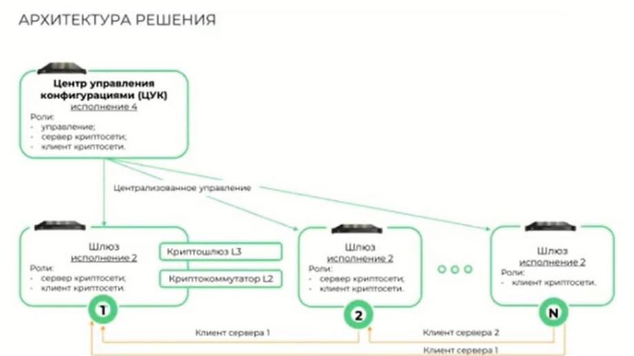 Basic functional capabilities – these are encryption tasks in accordance with domestic GOSTs, various functions of centralized management and monitoring, as well as management through a console interface, the ability to create an unlimited number of managed nodes of virtual networks, event logging. All centrally generated configurations are sent directly to the end devices automatically through the corresponding message brokers, which ensures guaranteed configuration behavior even if the device was unavailable and then turned on, it will receive this configuration.