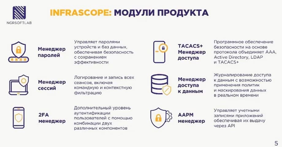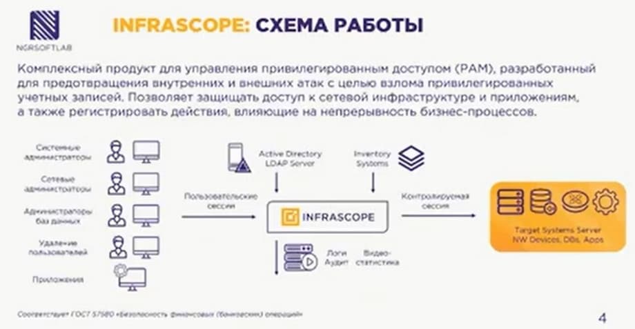 And initially, the entire system was designed as a solution on the basis of which you can deploy a key from scratch. Infrascope is our third product. It belongs to the PAM (Privileged Access Management) solution class. I will hand over to Alexey Isaev, Head of Technical Sales Support.