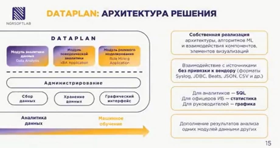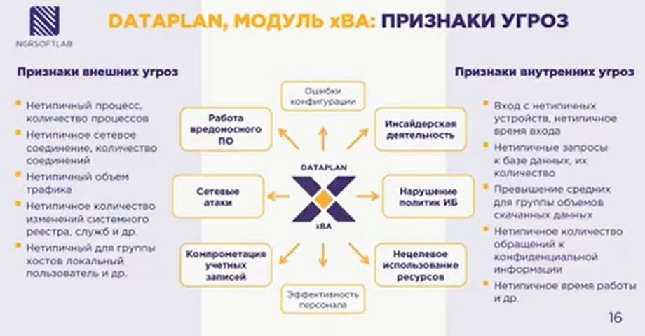 DATAPLAN has already been implemented in several organizations, it helps with insider activity, in identifying compromised credentials, in identifying misuse of resources, in presenting data for assessing the effectiveness of employees, information resources and protection systems.