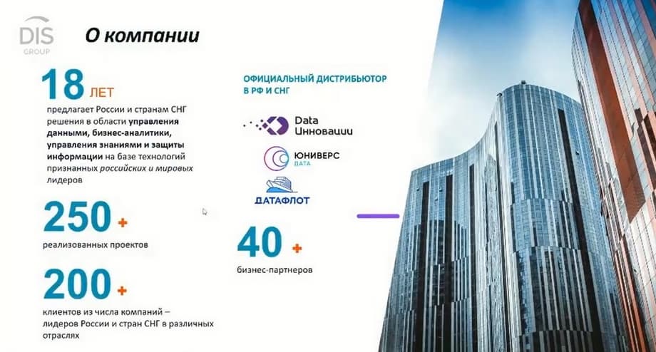 Event by OCS and DIS Group, a Russian IT company that offers solutions in data management, business intelligence, information security, and also provides consulting and implementation of projects in these areas. The event will provide an overview of the main use cases, capabilities of the tool from the perspective of users and administrators of the solution.