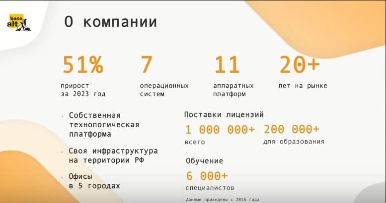 Компания «Базальт СПО» была образована в 2001 году и тогда назывались Alt Linux. В 2015 году произошел ребрендинг и наименование поменялось на «Базальт СПО». Наш продукт – это операционная система Альт.