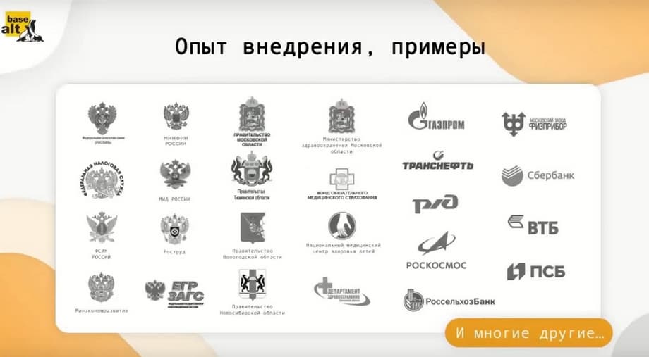 На этом слайде указывают примеры наших заказчиков. Еще раз, наши операционные системы, находящиеся в облаке, они полностью заменяют зарубежные аналоги, включая Windows.