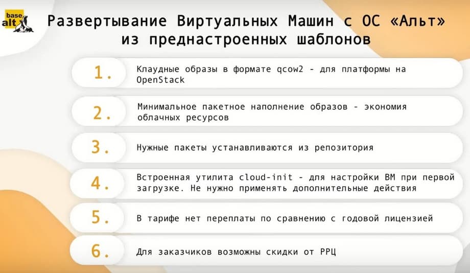 - Наша помощь по внедрению ОС «Альт» пользователям облака;