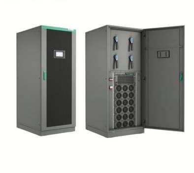Sufficient compactness. For example, a solution up to 300 kilowatts occupies 600 millimeters in width, up to 600 kilowatts occupies 1000 millimeters in width. An internal modular architecture is implemented. This means that inside this UPS there are power modules that support internal N+ redundancy, if, for example, we load the UPS to a load of less than 80 or even 90%. However, these modules do not support hot-swapping. Also, these UPSs have a multi-charger that allows you to connect both lead-acid batteries and lithium batteries, which support a higher charging current and can be charged within a couple of hours. And the final function, but nevertheless very important, is the ability to perform load testing of the UPS without directly connecting the load. That is, we can connect it to the network, start this mode, the UPS will completely check the operability of all its elements and show the corresponding conclusion that the UPS is working properly. This function is especially relevant in cases where the UPS is at the facility much earlier than the load with which it is planned to be used, and its operability must be checked in advance to avoid any risks during commissioning.