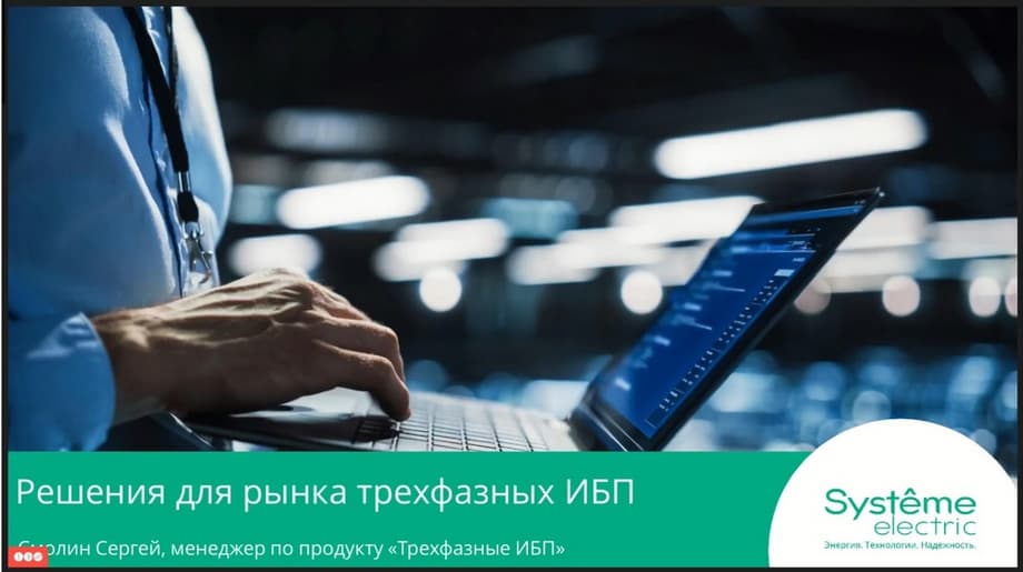 A joint event by OCS and Systeme Electric, a Russian manufacturing company with expertise in power management. During the presentation, Sergey Smolin, Product Manager for "Three-Phase UPS," presented the following topics: • Overview of the Systeme Electric three-phase UPS product line; • Technical solutions and advantages of each UPS line; • Equipment service support.