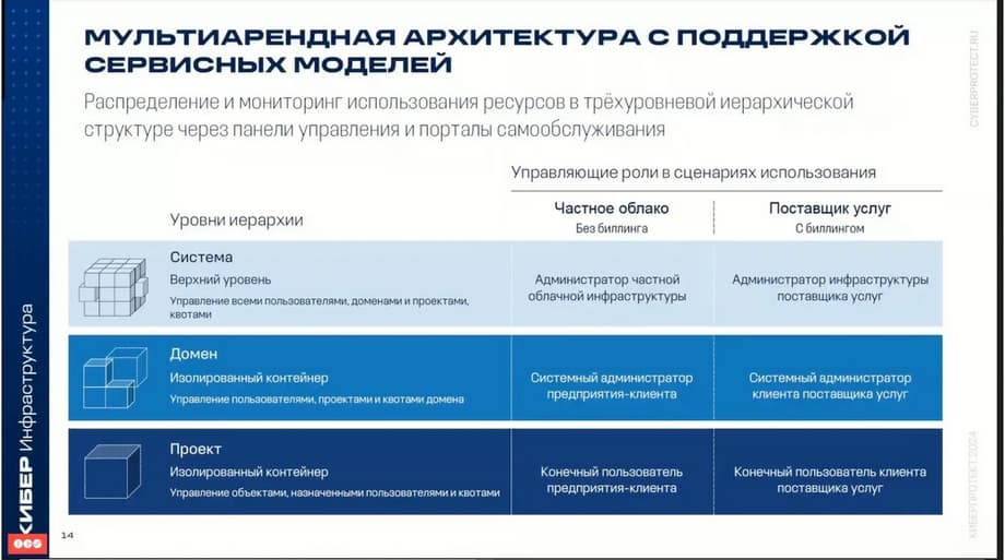 Also as in OpenStack, it is possible to use a multi-tenant architecture in cyberinfrastructure, which is used in the construction of private and public clouds.