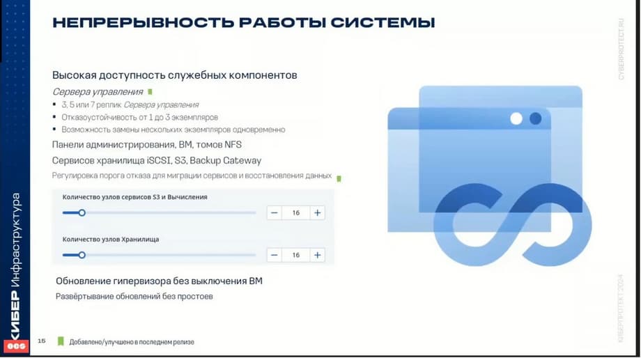 Cyberinfrastructure provides high availability of all services. This means the administrator panel. The management server is usually clustered, and there are usually several management servers in the system.
