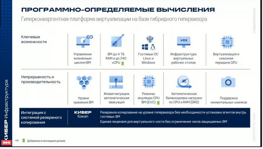 The mechanism for creating snapshots is supported. It must be said that in the latest version a feature was also included so that on top of the virtualization system, it would be possible to deploy virtualization of desktops, that is, VDI infrastructure of desktops. These are the main features.