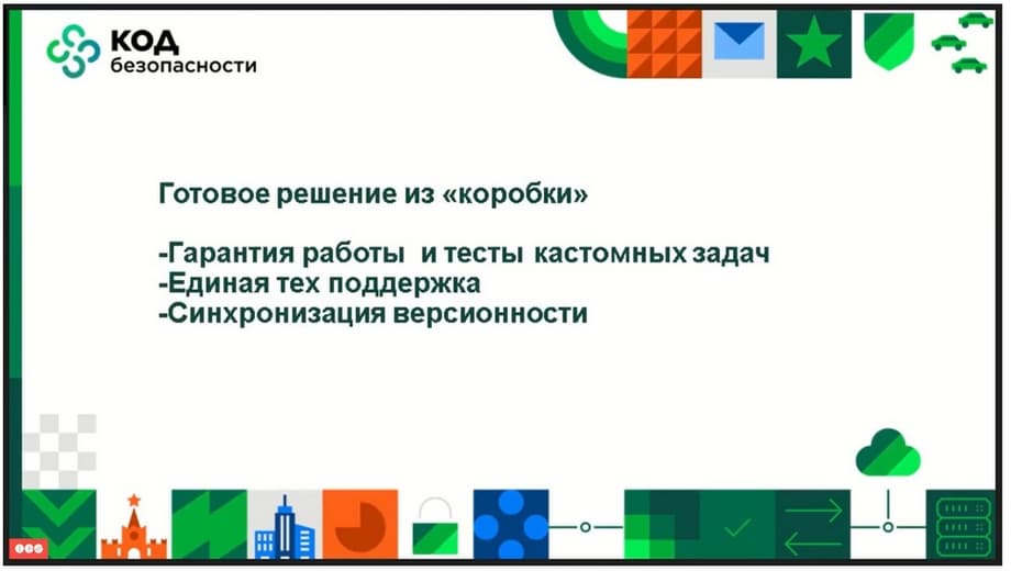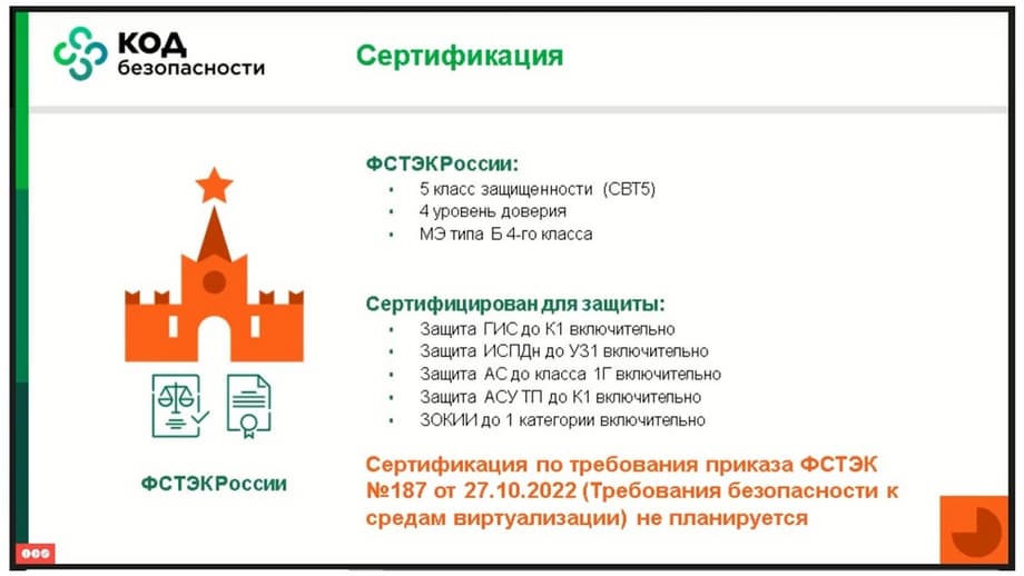 We work very closely with our colleagues. Our development departments jointly promote solutions. And we see in advance all the versions that are released. If we are talking about certified versions, they are significantly behind in functionality, because the certification of the same zVirt takes a lot of time. The certified version is released with a delay of 12-14 months. We are talking about a difference in versions of 1-2 months. Now we want to reduce it even more, that is, within one month, our development team synchronizes, and all versions will be added to the form, which will allow us to provide the customer with the most functional product. Roughly speaking, the customer will receive all the functionality that zVirt offers at the moment, all new versions. At the same time, we, as an imposed tool, give the opportunity to pass certification. We are talking about a single technical support, that is, the grouping of their technical support is provided by zVirt colleagues. By purchasing the bundle, the customer comes to zVirt, and they answer all the questions there. Engineers at zVirt know the vGate product. In case of complex questions, they transfer them to our technical support, but still answer through the zVirt channel. For customers, this is much easier. Thus, we are saying that information security and IT become in the same row and go together. And, if earlier the certified version from zVirt pleased information security employees, they received a certificate, but information security, showing this certificate, told IT specialists that the product, of course, was completed with a delay of 12-14 months, and it does not reflect the latest trends in functionality. But now, in the form of an imposed tool, the customer receives both the latest version in terms of functionality and the corresponding requirements of the regulator. Thus, we go hand in hand and support the interests of both.