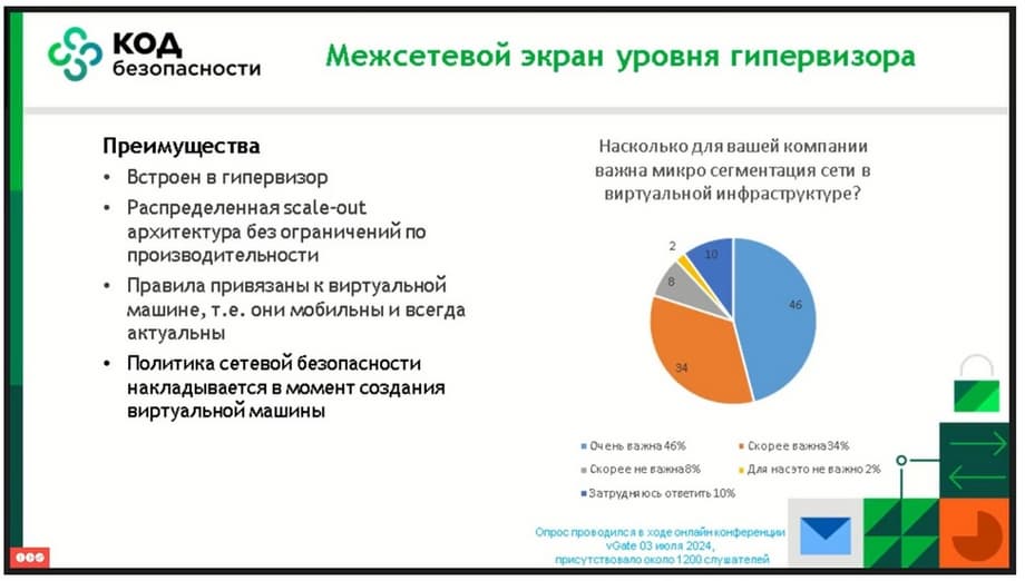Thus, we significantly reduce the load on those colleagues who write these rules for firewalls. We spoke with customers, conducted surveys. Let me remind you about our study that was conducted by us in July. All 1200 listeners who attended the seminar, when we asked them about the need to use microsegmentation in their solutions, told us how important it is for them.