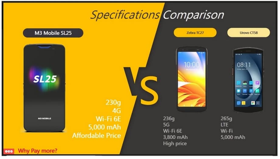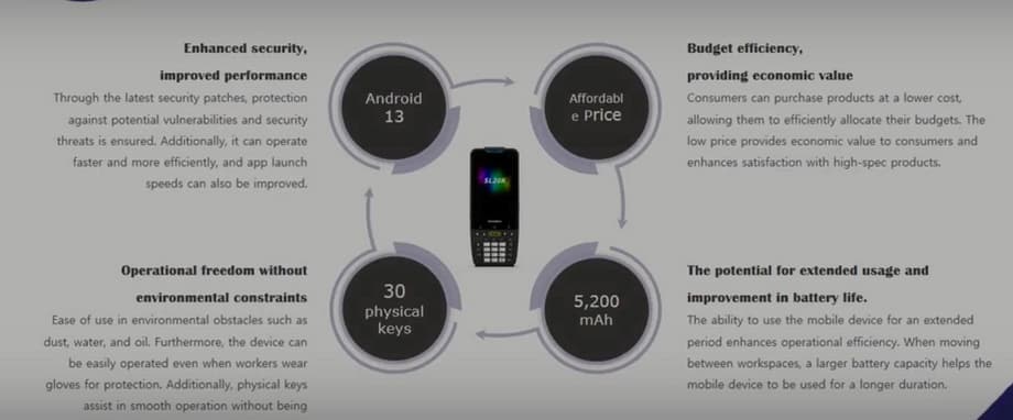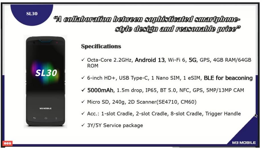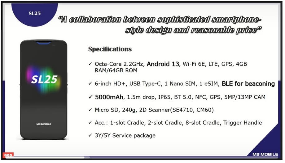 Some customers are asking for a newer Android. Because the previous SL20 model has Android 11, and customers are asking when new versions 13, 14, etc. will appear. For this, we made the same SL20 device, only changed the chipset to a more modern one. And there is also a difference in that, in addition to Android 13, there is Wi-Fi 6E. This is not yet a full-fledged Wi-Fi 6, but still the 6th version. You can argue about why this is needed. No one even understands what Wi-Fi 6 is. But it's fashionable, it sounds modern, and it's now constantly appearing in technical specifications. We are forced to react, so the SL25 device supports Wi-Fi 6E. This is 4G LTE, this is not 5G and Wi-Fi 6E. This combination allows you to stay in the old inexpensive price range. Because the new chipset used in this device is cheaper than the previous one. And secondly, since we use the same case, the same batteries, and the same accessories, we can save on the fact that we do not need to re-develop all these accessories. That is, the price of the product decreases for us. That is, the SL25 turns out to be the same price as the SL20, and in some cases even cheaper. This is its huge advantage.