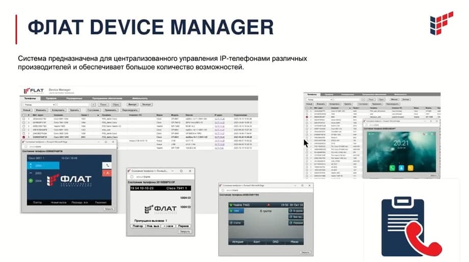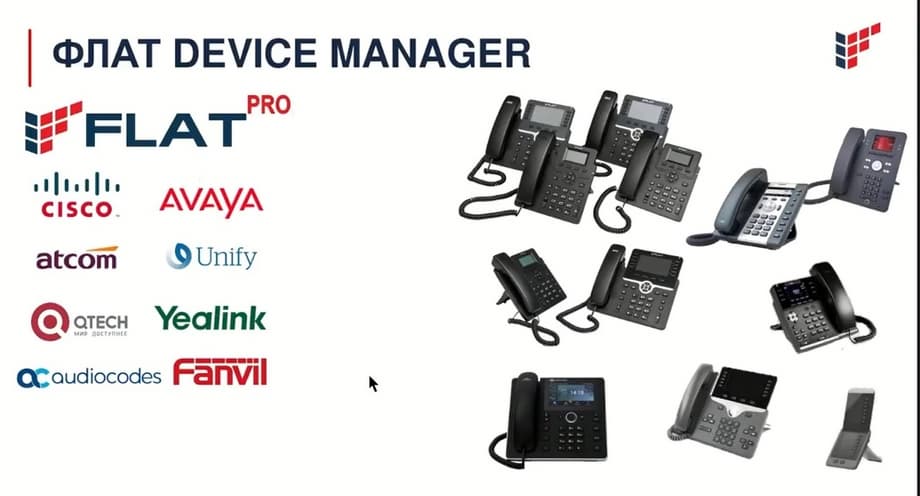 Our phones, if the user wishes, can be equipped with software. This is Flat-Device Manager, a software service for auto-provisioning phones.